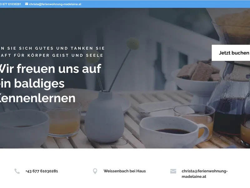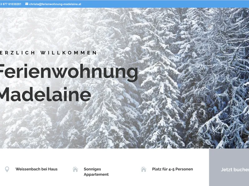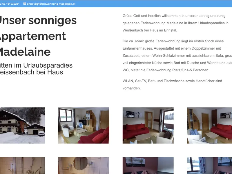 Bei diesem Projekt hatten wir das Vergnügen, mit der Ferienwohnung Madelaine zusammenzuarbeiten. Gelegen in Weißenbach bei Haus im Ennstal, bietet diese charmante Unterkunft ein einzigartiges Urlaubserlebnis. Unser Ziel war es, eine digitale Visitenkarte in Form einer One-Pager Website zu erstellen, die nicht nur die Schönheit und Ruhe der Ferienwohnung widerspiegelt, sondern auch den Nutzern eine einfache Möglichkeit bietet, mit dem Anbieter in Kontakt zu treten.